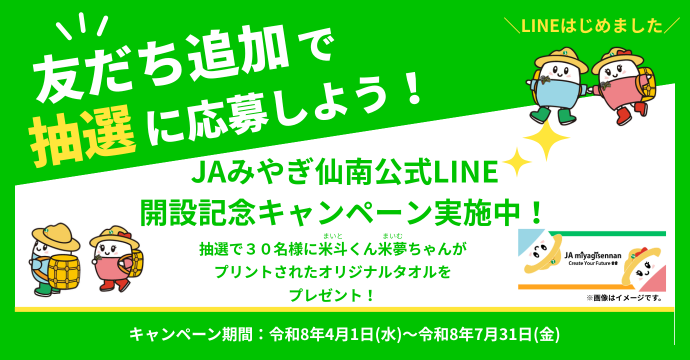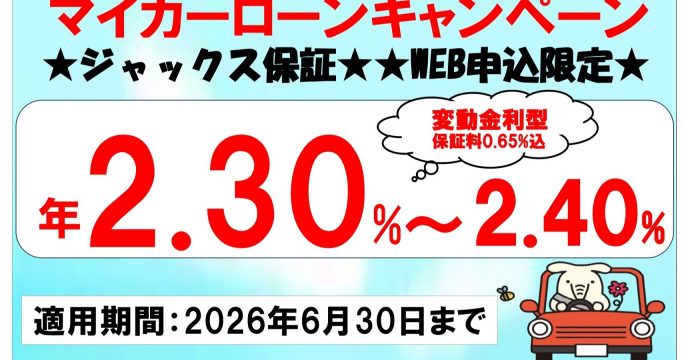 暮らし応援キャンペーン2026「ローン」! 2026年1月1日(水)~2026年4月30日(木)までマイカーローン、教育ローン、(証書型・カード型)の特別金利実施中!詳しくはチラシまたは支店窓口へお問い合わせください。 ★仮申し込みはこちらから