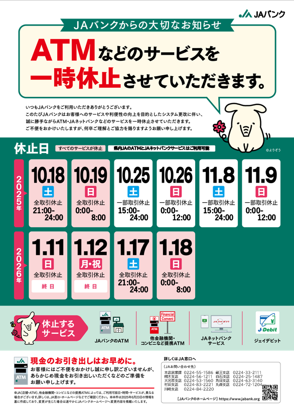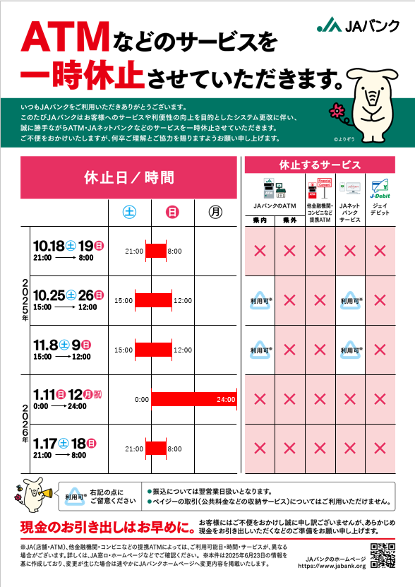 ATMなどサービス一時休止についてのお知らせ(PDF)