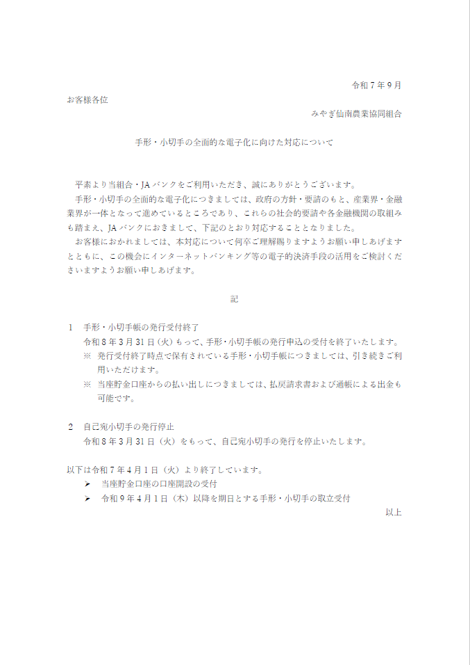 手形・小切手の全面的な電子化に向けた対応について